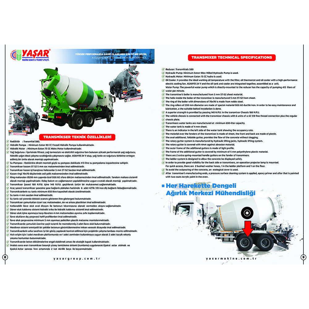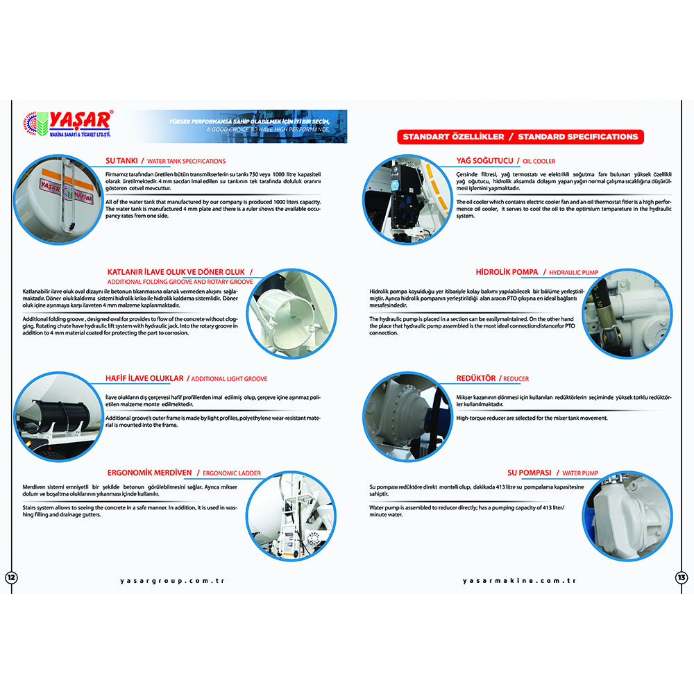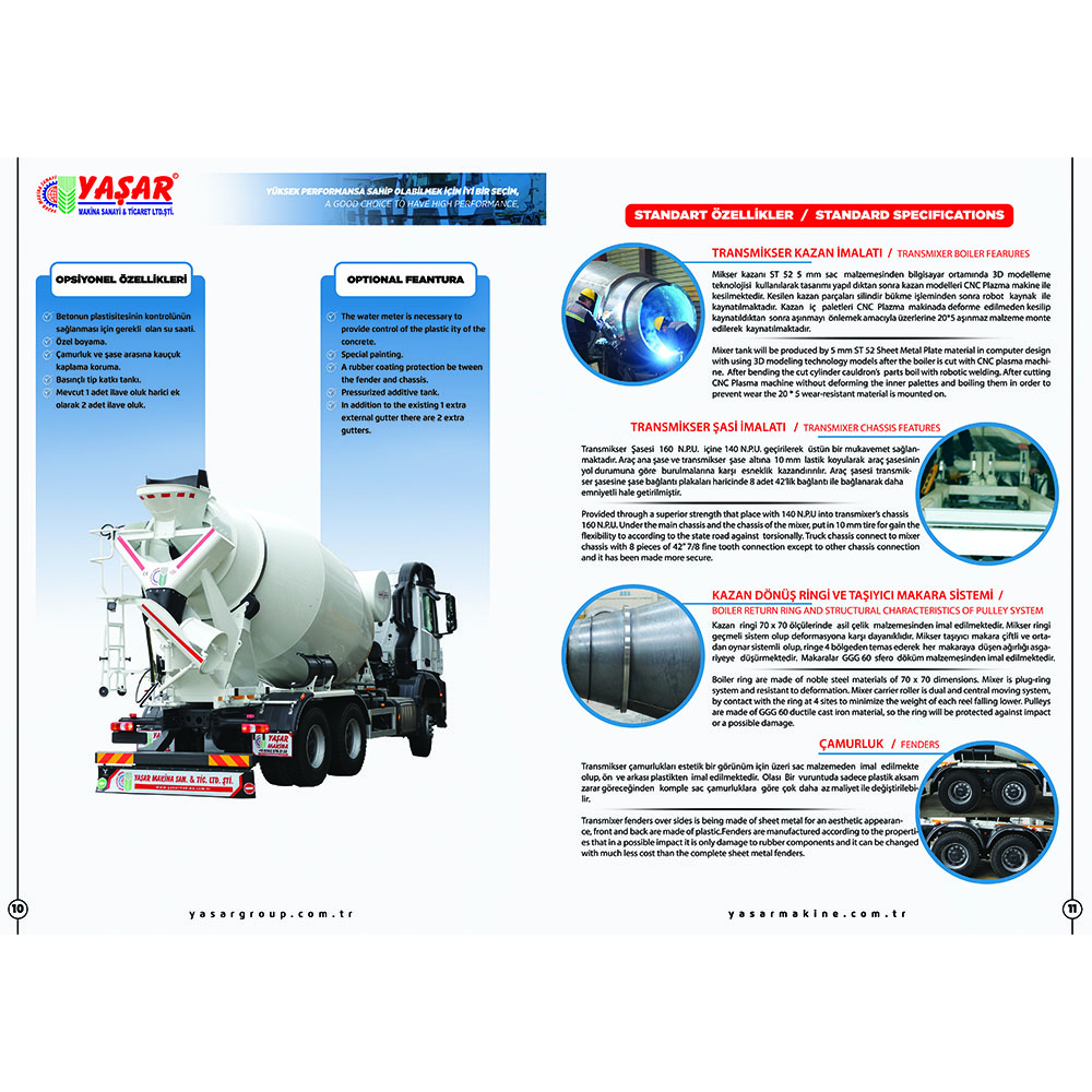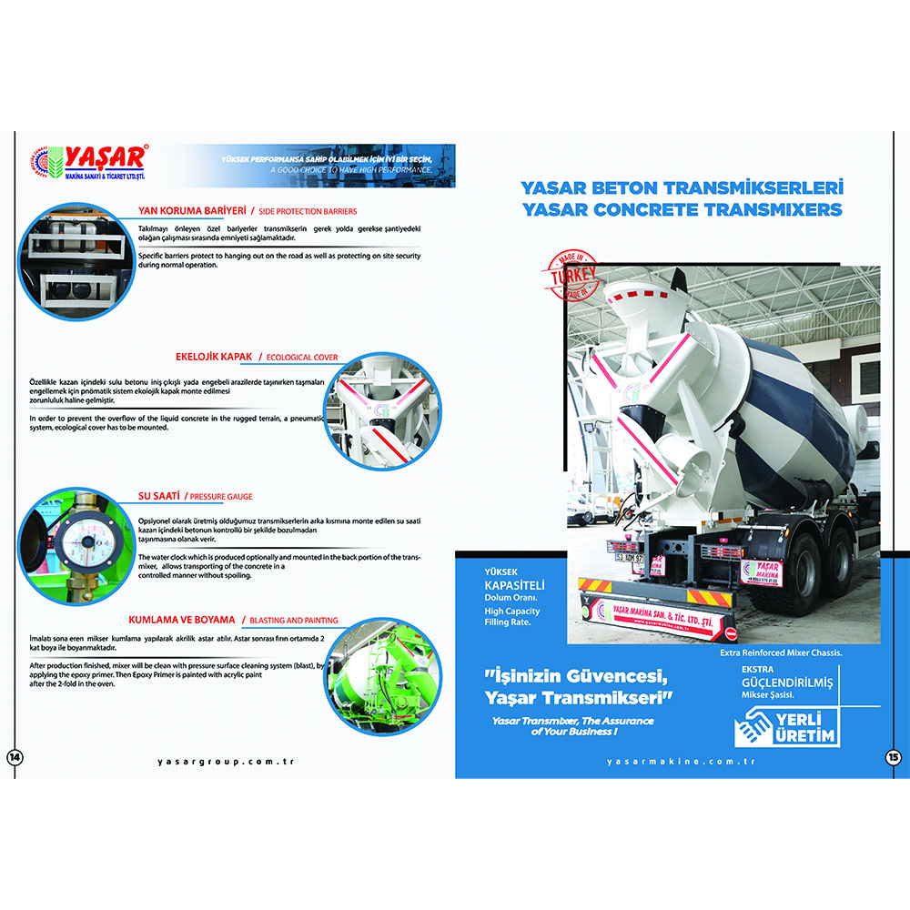 Складная дополнительная овальная конструкция желоба обеспечивает поток бетона, не позволяя ему засоряться. Система подъема вращающегося желоба представляет собой гидравлическую подъемную систему с гидравлическим домкратом. Лестничная система позволяет безопасно видеть бетон. Она также используется для промывки загрузочных и разгрузочных желобов смесителя. Автобетоносмеситель предназначен для приготовления бетонной смеси. Внутри него находится барабан или смеситель, и этот барабан вращается. Материалы бетона (цемент, песок, гравий, вода) смешиваются в барабане, и создается однородная бетонная смесь. Автобетоносмесители могут быть доступны в различных объемах. Существуют модели разных размеров от небольших смесителей для небольших строительных проектов до смесителей большой емкости для крупных строительных проектов. Автобетоносмеситель, Миксер, Автобетоносмеситель