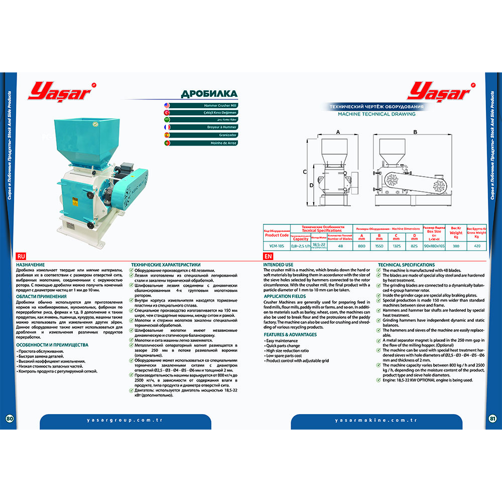 Дробилка — это машина, которая измельчает твердые или мягкие материалы, разбивая их в соответствии с размером отверстий сита, выбранных молотками, соединенными с окружностью ротора. С помощью дробилки можно получить конечный продукт с диаметром частиц от 1 мм до 10 мм. Дробилки обычно используются для приготовления кормов на комбикормовых заводах, мукомольных заводах, рисовых мельницах или фермах и т. д. Помимо таких материалов, как ячмень, пшеница, кукуруза, машины также могут использоваться для измельчения муки и выступов рисовой фабрики. Машину также можно использовать для дробления и измельчения различных продуктов переработки. Автоматические рисовые машины, стоимость рисовой мельницы.