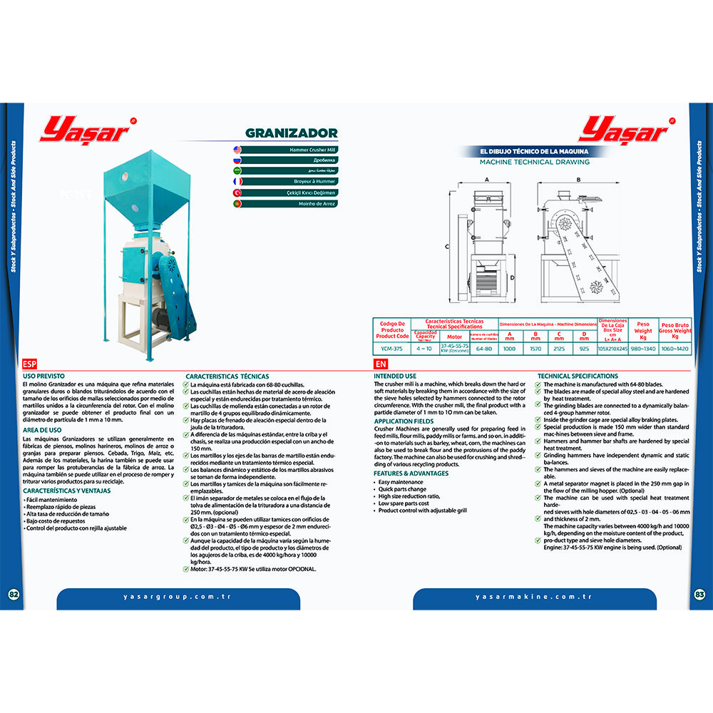 La trituradora mili es una máquina que desmenuza los materiales duros o blandos rompiéndolos de acuerdo con el tamaño de los agujeros del tamiz seleccionados por martillos conectados a la circunferencia del rotor. Con la trituradora mili, se puede tomar el producto final con un diámetro de partícula de 1 mm a 10 mm. Las máquinas trituradoras se utilizan generalmente para preparar piensos en fábricas de piensos, fábricas de harina, fábricas de arroz o granjas, etc. Además de materiales como cebada, trigo, maíz, las máquinas también se pueden utilizar para romper la harina y las protuberancias de la fábrica de arroz. La máquina también se puede utilizar para triturar y triturar varios productos de reciclaje. La máquina está fabricada con 64-80 cuchillas. Las cuchillas están hechas de acero de aleación especial y están endurecidas por tratamiento térmico. Las cuchillas de molienda están conectadas a un rotor de martillos de 4 grupos equilibrado dinámicamente. Planta de procesamiento de arroz y arroz llave en mano, Planta de procesamiento de arroz libre de polvo.