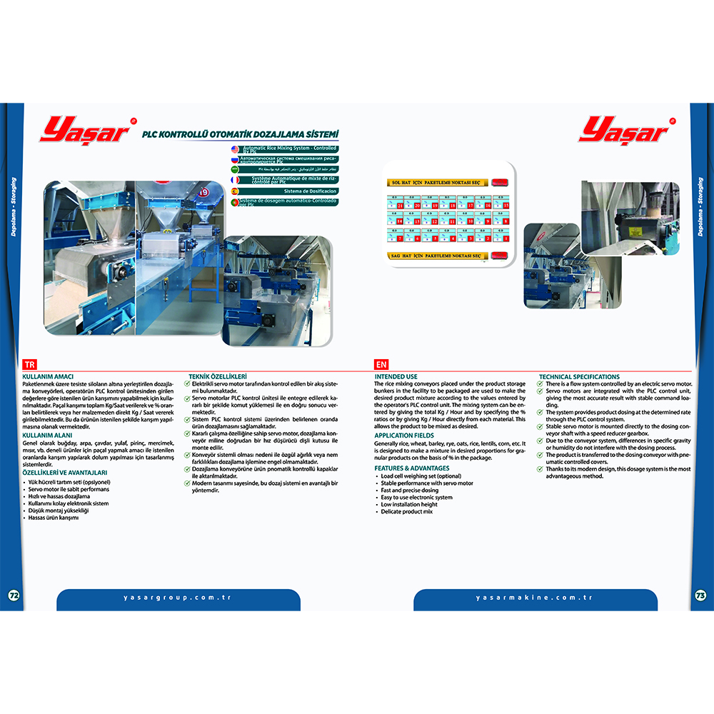 Les convoyeurs de mélange de riz placés sous les bunkers de stockage du produit dans l'installation à emballer sont utilisés pour réaliser le mélange de produits souhaité en fonction des valeurs saisies par l'unité de contrôle PLC de l'opérateur. Le système de mélange peut être saisi en indiquant le total Kg/Heure et en spécifiant les ratios % ou en indiquant Kg/Heure directement à partir de chaque matériau. Cela permet de mélanger le produit comme on le souhaite. Généralement riz, blé, orge, seigle, avoine, riz, lentilles, maïs, etc. Il est conçu pour réaliser un mélange dans les proportions souhaitées pour les produits granulaires sur la base du % dans l'emballage. Il existe un système de flux contrôlé par un servomoteur électrique. Les servomoteurs sont intégrés à l'unité de contrôle PLC, donnant le résultat le plus précis avec un chargement de commande stable. Moulin à riz sans poussière, machines de traitement du riz et du paddy.