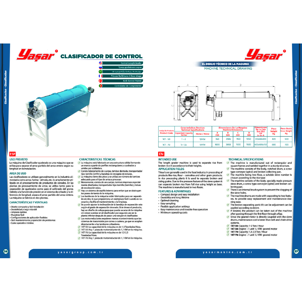 La máquina clasificadora de longitud se utiliza para separar el arroz del arroz partido de acuerdo con sus alturas. Los Trieur se utilizan generalmente en la industria alimentaria en el procesamiento de productos como arroz, harina, sémola y otros productos de granos. En las plantas de procesamiento de arroz se utiliza para separar los granos partidos y clasificados. Debido a la característica de presión del sistema de tamiz, puede separar el arroz partido del arroz completo utilizando la altura como base. La máquina se fabrica en dos pisos. La máquina está fabricada con marcos rectangulares y cuadrados y soldados entre sí en una estructura resistente. La máquina consta del cuerpo, tambor dentado, un transportador de tipo tornillo (espiral) y bandeja colectora de arroz roto. Al ser una máquina de dos pisos, se elige un número de tamiz adecuado según el tipo de arroz. La máquina consta del cuerpo, un tambor tamiz de presión especialmente fabricado, un transportador de tipo tornillo (espiral) y una bandeja colectora de arroz roto. Hay un sistema de cepillo interno para evitar la obstrucción de los orificios del tamiz. Los tambores de la máquina están hechos con separación en dos características, para proporcionar un fácil reemplazo y facilidad de mantenimiento y limpieza. Máquinas clasificadoras de arroz, Clasificación de arroz
